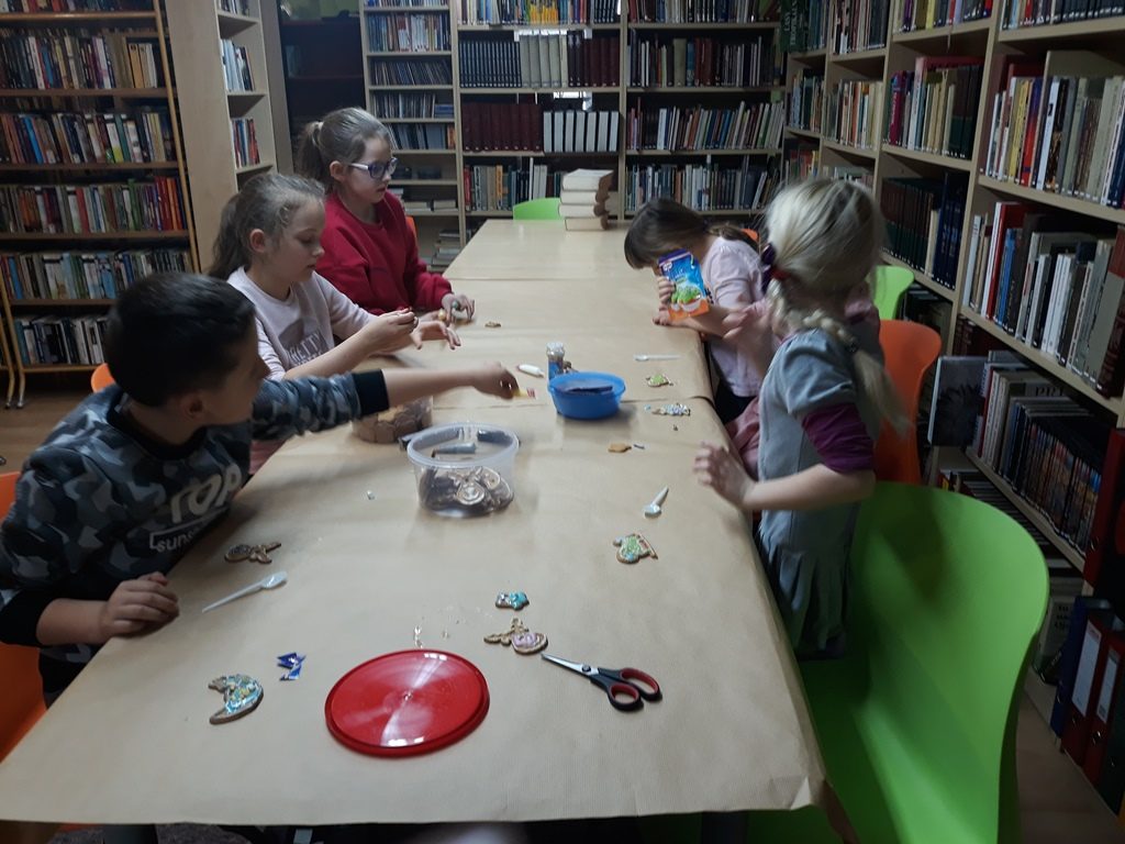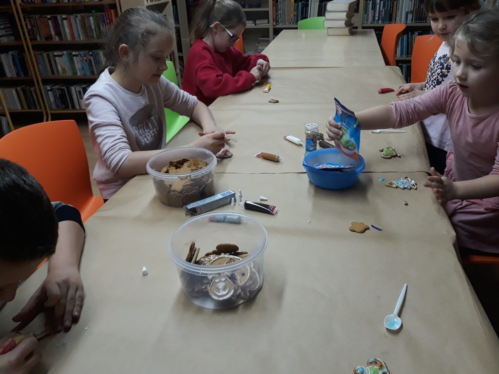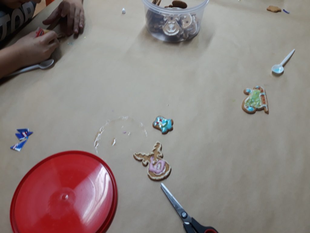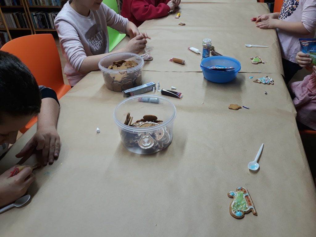 W ubiegły piątek wyruszyliśmy z legendą do Torunia. Razem z uczestnikami zajęć w Bieniowie przeczytaliśmy legendę o słynnych toruńskich piernikach, już przy wysłuchaniu opowieści… ciekła nam ślinka na myśl o nich. Poznaliśmy wyjątkową architekturę miasta, omówiliśmy teorię Mikołaja Kopernika „O obrotach sfer niebieskich”. Największą atrakcją spotkania było wykonanie pierniczków, i tu zaczęła się zabawa. Każdy upiększał ciastko wg uznania, wszystkie pierniczki były barwne i z całą pewnością pyszne. Na koniec zajęć pobawiliśmy się w zabawę odbicie lustra. Dzieci naśladowały osobę stojącą naprzeciwko siebie, co okazało się nie lada wyzwaniem 😉