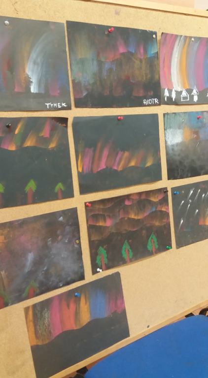 Pierwszego dnia „zwiedzaliśmy” zimne obszary Arktyki. Zainteresowała nas Grenlandia i postanowiliśmy poczytać o tej niezwykłej wyspie. Obejrzeliśmy piękne fotografie oraz film pokazujący zorze polarne. Postanowiliśmy zrobić własne zorze:)