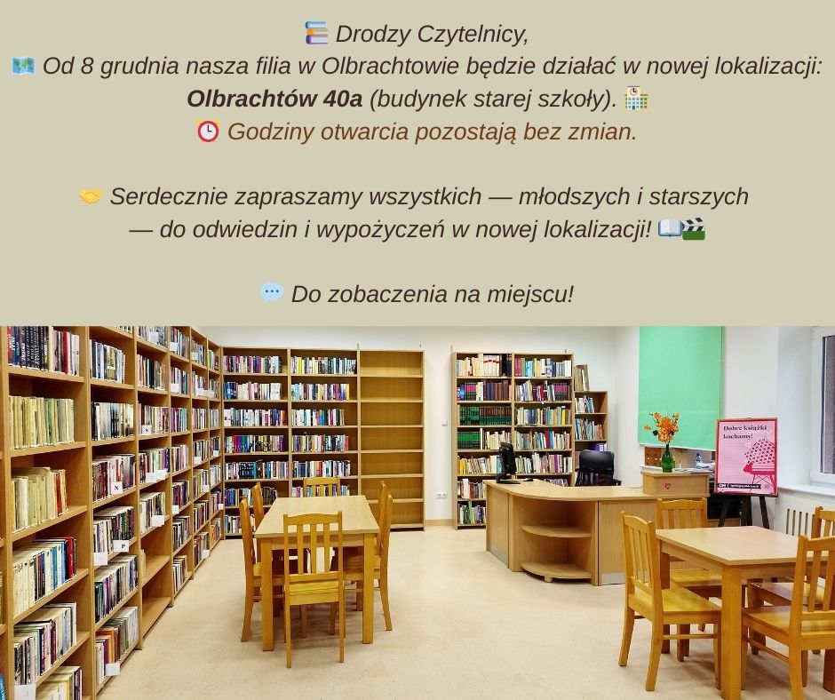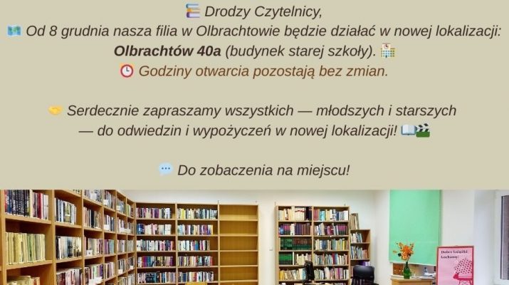 Aktualności Filia Olbrachtów Informacje 8 grudnia 20258 grudnia 2025 Nowa lokalizacja filii w Olbrachtowie Posted By: Redaktor 0 Comment